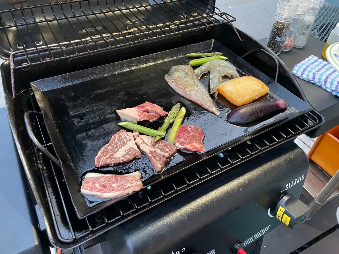 BBQでは、母はお肉を食べれないのでカニや魚を出してもらえたみたいです🦀🐟